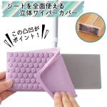 フローリングワイパーを薄いシートで使用すると、ワイパーの両端にゴミの付着が集中し、拭きムラが出るという悩みに応えて、普段使用しているフローリングワイパーにかぶせるだけで、ホコリの吸着効果がアップする、シリコーン素材の「立体凸凹ヘッドのワイパーカバー」を開発。シート全面で細かい汚れも絡めとることができ、軽い力で掃除ができるよう、ワイパーの中心に向かって盛り上がった凸凹構造を何度も試作を重ねて開発した商品です。